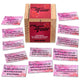 ES UNA CAJA DE MADERA CON 90 TARJETAS DE PRUEBAS DE SEDUCCIÓN Y AMOR Y CONTIENE UN MINI VIBRADOR. Y POR DETRÁS DE CADA TARJETA HAY UN NÚMERO DEL 1 AL 3, EL JUGADOR GANADOR ES EL QUE MAYOR NÚMERO CONSIGA. EL RELOJ DE ARENA ES EL QUE MARCA EL TIEMPO DE LAS PRUEBAS. SE JUEGA COGIENDO UNA DE LAS TARJETA DE LA CAJA, HABRÁ QUE HACER TODAS LAS PRUEBAS, ASÍ UNA TRAS OTRA PARA ACUMULAR PUNTOS.