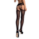 Medias en red fina de color negro bordadas con liguero unido en una sola pieza fabricado y diseñado prestigiosa marca Obsessive